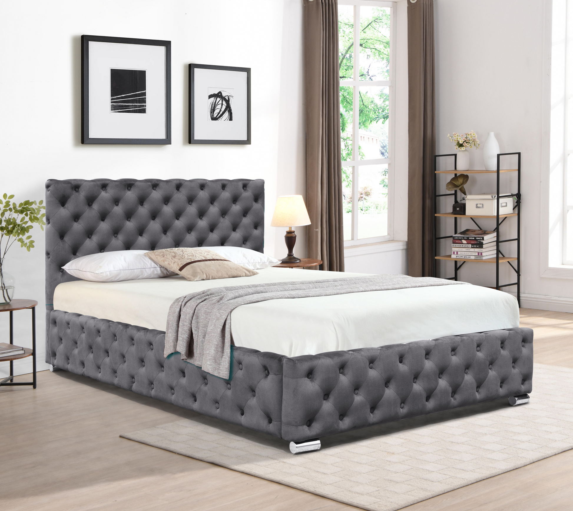 Tufted Fabric Bed Frame In Grey Or Green In 3ft, 4ft6 or 5ft Size Bedroom